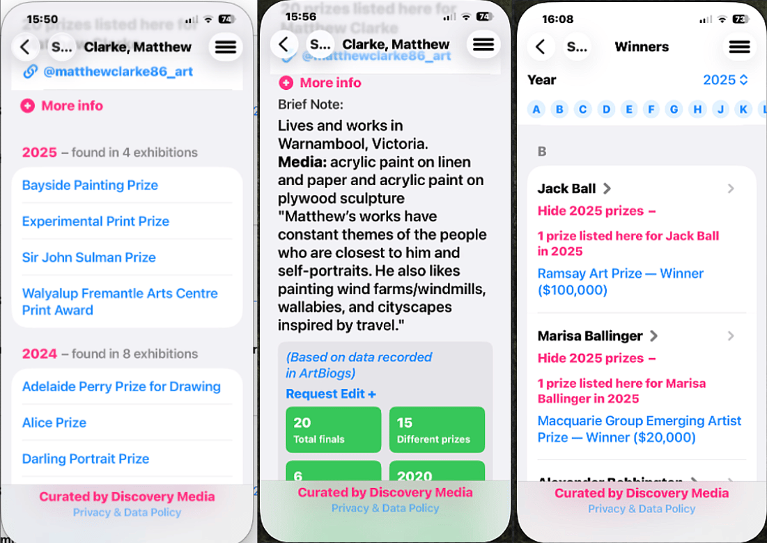 December 2025 There are no prizes without finalists The effort and expense that artists incur to enter art prizes is quite extraordinary and is unfortunately often overlooked. We want to record those efforts on behalf of the art prize sector and are continuing to build a unique dataset of finalists for prizes. We can't do this for all prizes as the workload is too great, but we do try to cover as many as we can. I believe this is important data and I'm willing to wait for arts organisations...
